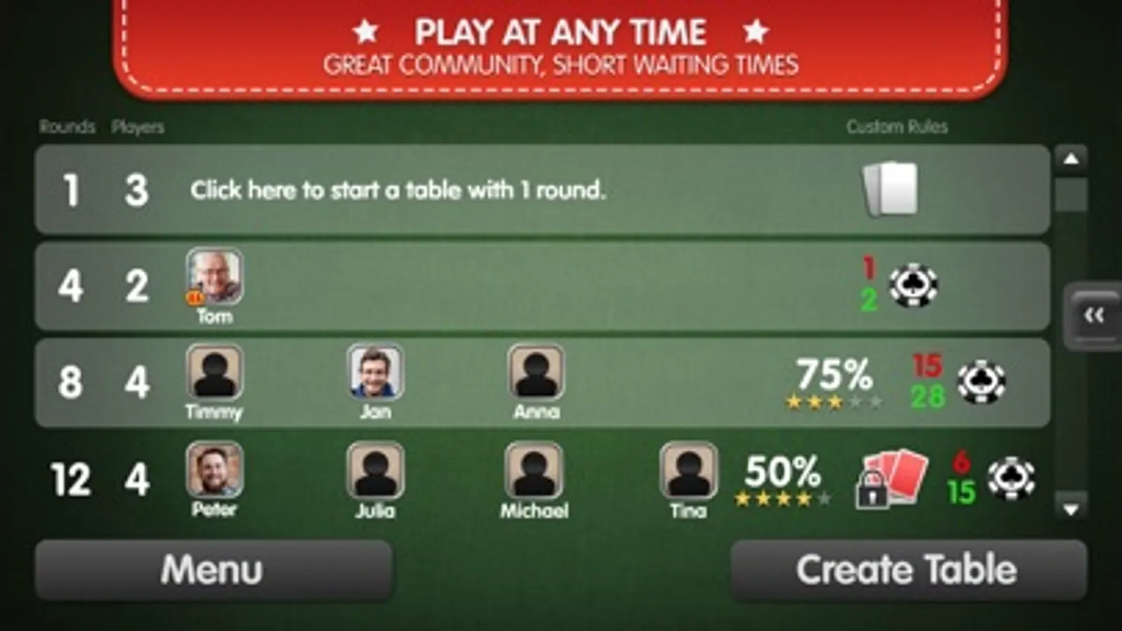 Enjoy the classic card combination fun online and with real opponents! Comparable to games such as Phase 10, Bridge, or Kalooki, Rummy requires above all brains and tactical skill. You can now experience it online and for free in one of the largest card game communities online.