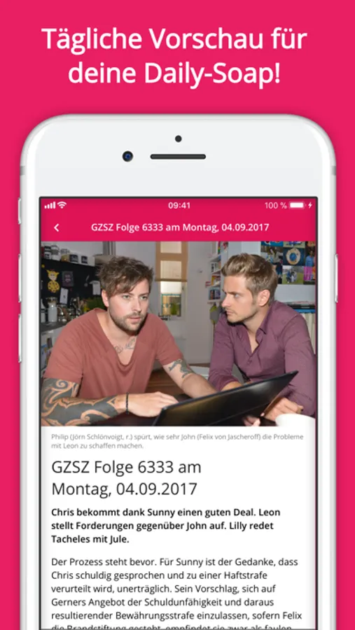 "Super geil! Endlich habe ich meine GZSZ Vorschau unterwegs immer dabei und verpasse keine Infos mehr zur nächsten Folge. Einfach Spitze!" (Sandra, aus Hamburg)