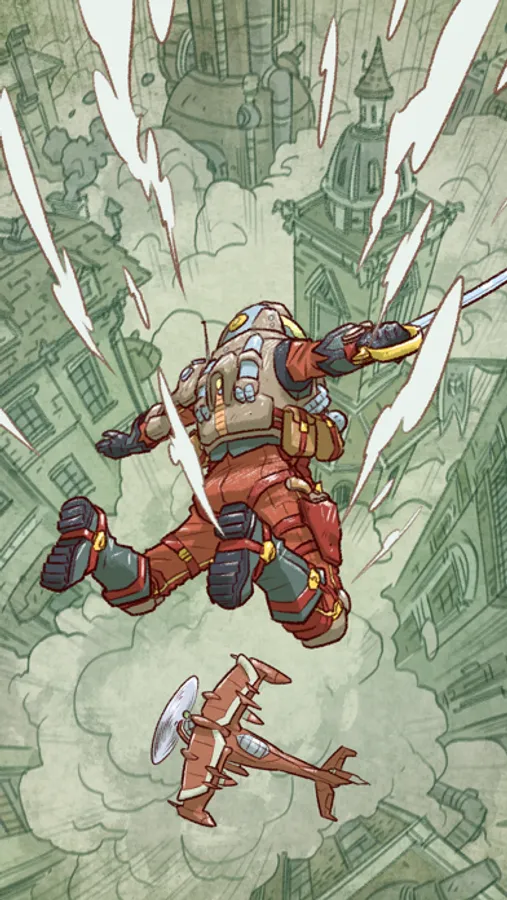 Overthrow your father's regime with his own secret experimental fighter plane! Dogfight dieselpunk aeros to save your city and the iron jungle beneath it.
