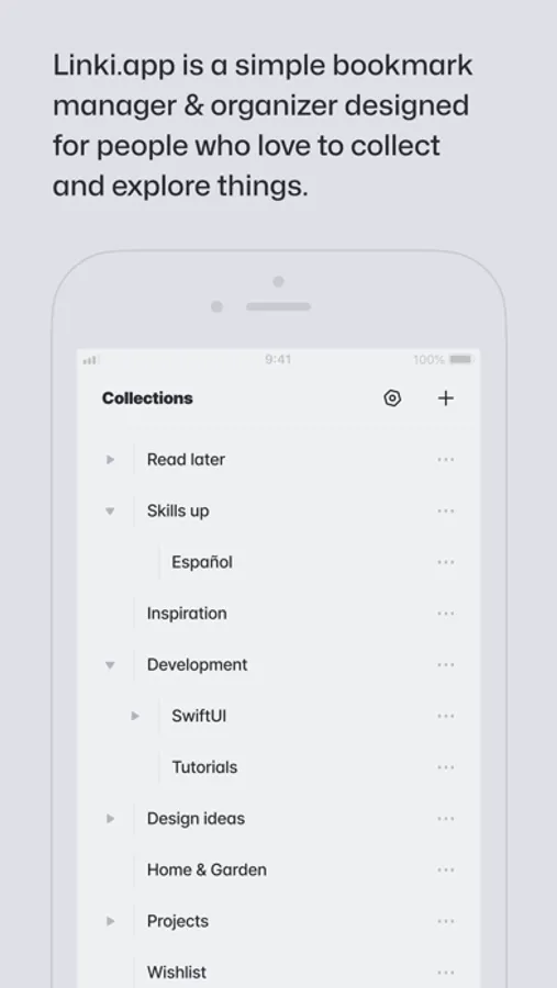 Linki.app is a simple bookmark manager & organizer designed for people who love to collect and explore things.