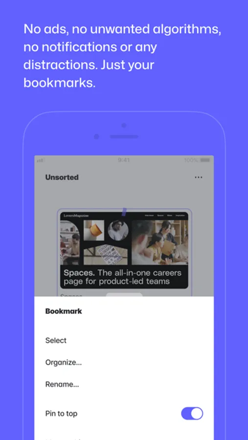 No ads, no unwanted algorithms, no notifications or any distractions. Just the bookmarking.