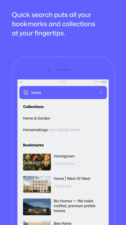 All your bookmarks and collections are at your fingertips. Just type keywords.