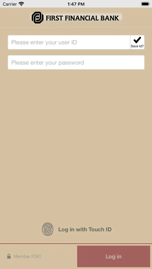 Getting started is easy. Simply download the app and sign on with your Business Online user credentials. [No additional fees apply. *]. For more information about First Financial Bank’s mobile services, please visit ffb1.com or call us at 800-562-6896 or locally at 870-863-7000.