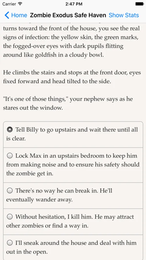 "Zombie Exodus: Safe Haven" is a series of thrilling interactive survival-horror novels by Jim Dattilo, where your choices control the story. It's entirely text-based—without animation or sound effects—and fueled by the vast, unstoppable power of your imagination.