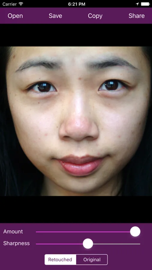Adjust the retouching amount and sharpness. Use the sliders to quickly adjust the retouching parameters so that you'll obtain the perfect portrait image.