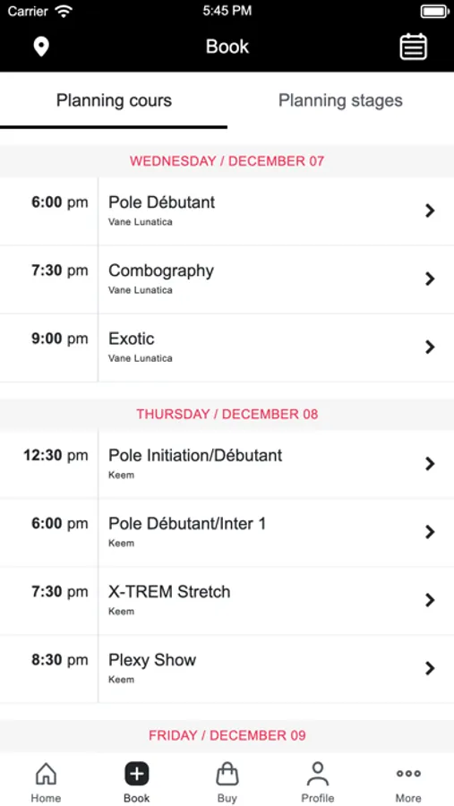 Téléchargez sans tarder l'application Pole & Dance pour gérer et planifier vos réservations de cours. Vous pourrez parcourir le planning, vous inscrire aux cours, et être tenu(e) informé(e) des dernières nouveautés et promotions.