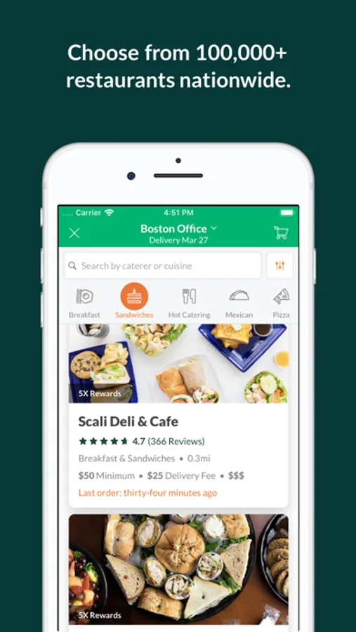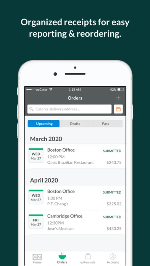 ezCater helps busy people find and order great food for their meetings and events, right from their mobile device.