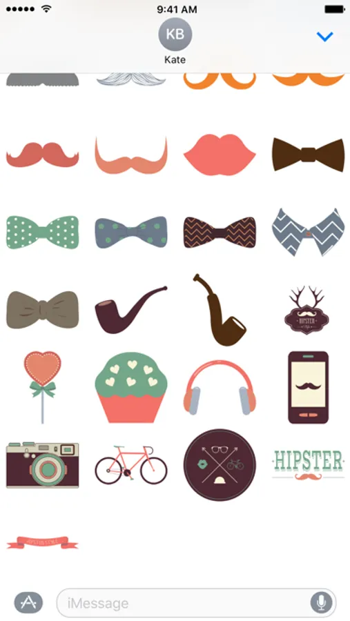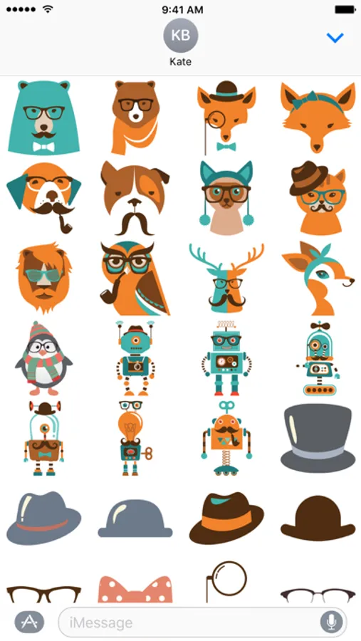 The ultimate hipster sticker pack has a sticker for that special hipster in your life. We've got hipster dogs, cats, lions and even robots. Hipsterize any existing photo or iMessage with our collection of hats, glasses, mustaches, and accessories.