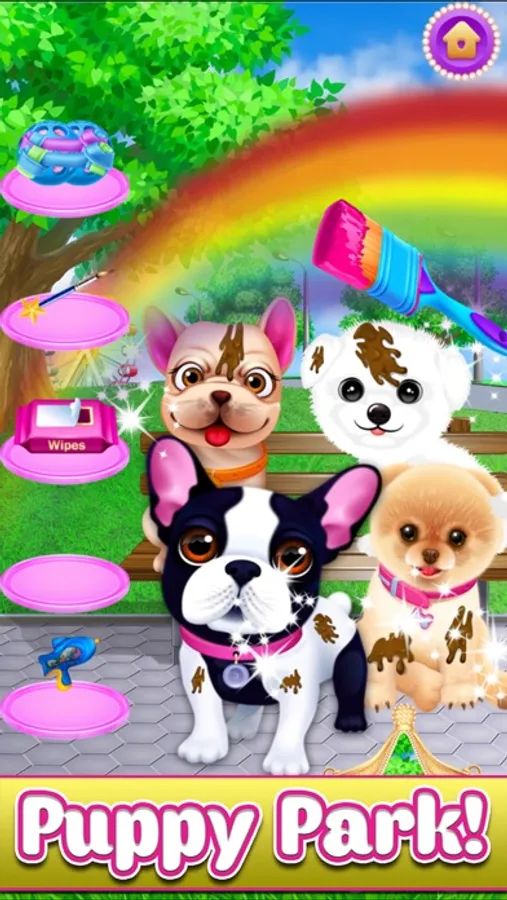 Level 4: Puppy park! Take all the puppies to the park for a fun filled day! Create a rainbow and more!