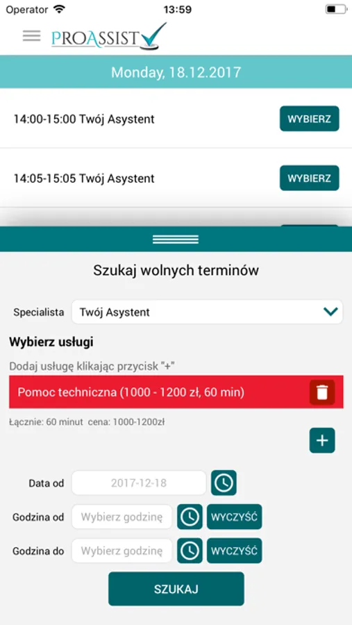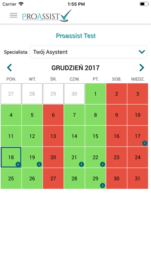 Aplikacja mobilna Proassist to narzędzie służące do prowadzenia kalendarza i rejestracji dla partnerów systemu Proassist.