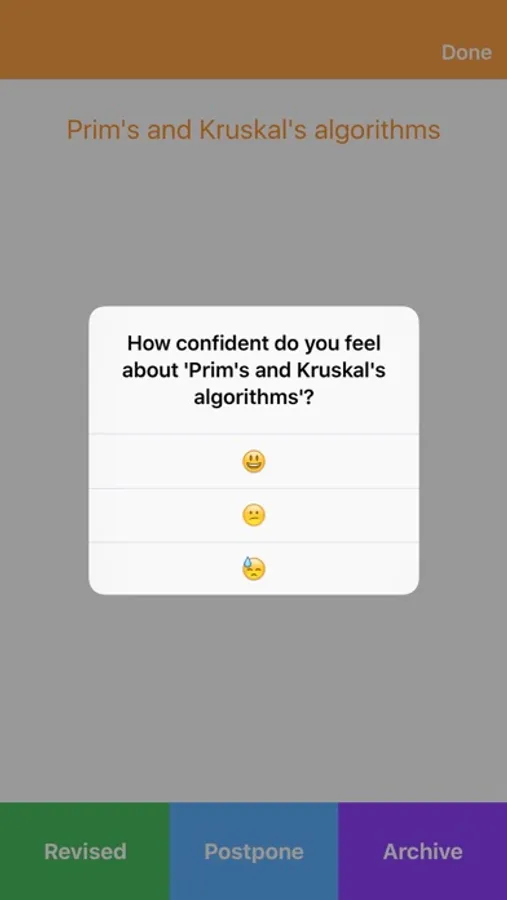 A simple to use, friendly popup gives you an easy way to mark how you feel about a topic. Whether you're super confident or just can't get the hang of it, don't worry - StudyLater has you covered.