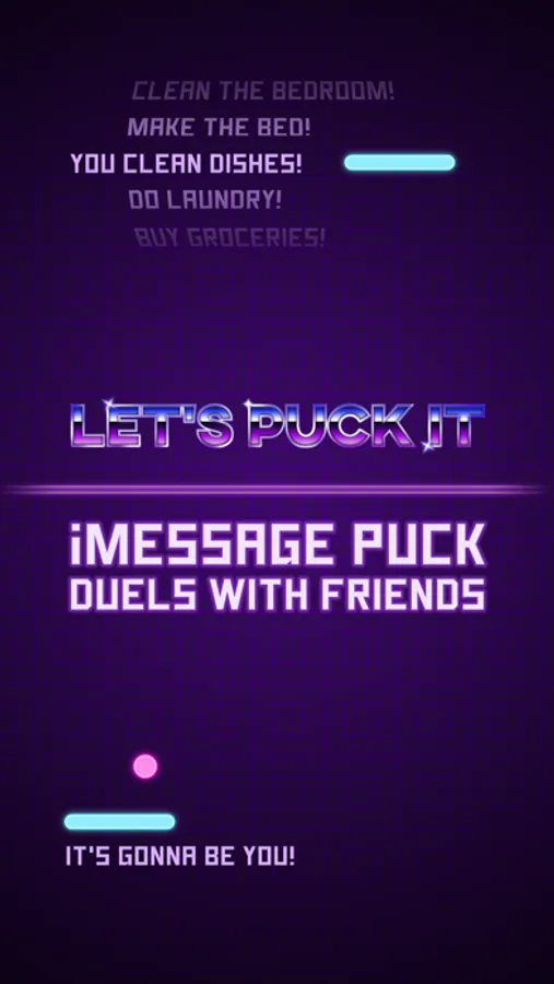 “Let’s Puck It” is a turn-based game of air hockey with high stakes involved. Choose from a list of bets (e.g. loser has to buy dinner, do winner’s laundry, etc) or enter your own custom stakes. Anything you can think of!