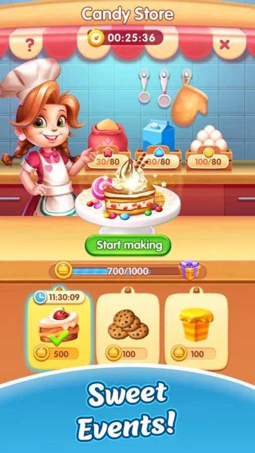Daily Reward, Spin the wheel, Happy Hour, Sweet Mission, Sweet Treats and so on