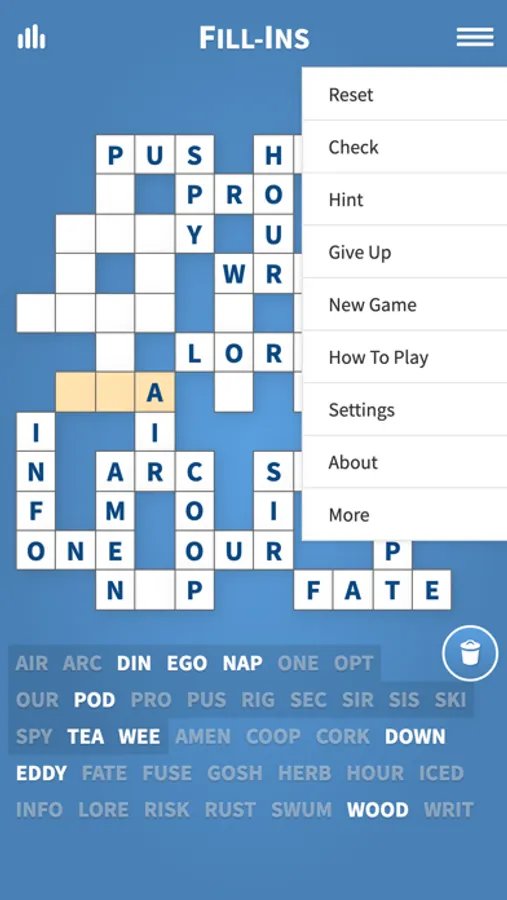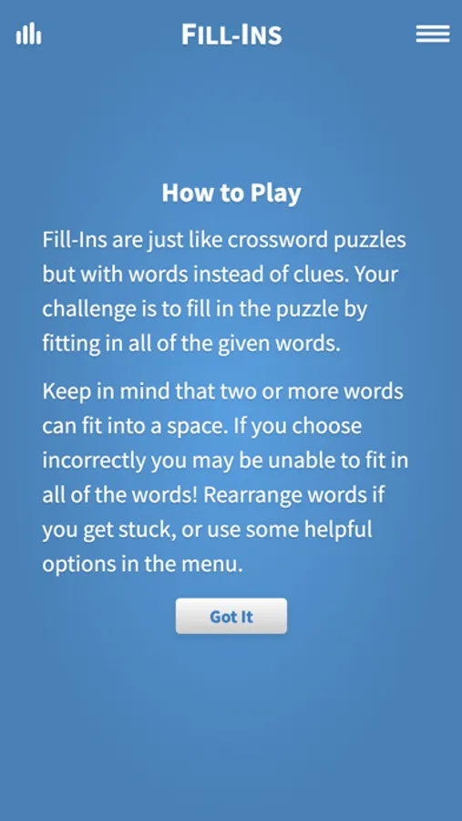 Enjoy Fill-Ins, our classic puzzle game with thousands of free to play word fit puzzles. If you like crossword puzzles, you will love fill in puzzles! A great mind exercise!