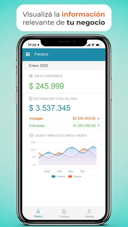 - Visualizar tu saldo disponible y un gráfico con la evolución de tus cajas y bancos correspondiente a los últimos cuatro meses.