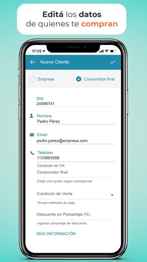 - Emitir ágilmente facturas electrónicas validadas por AFIP. Si tenés un local, esto reemplaza al controlador fiscal.