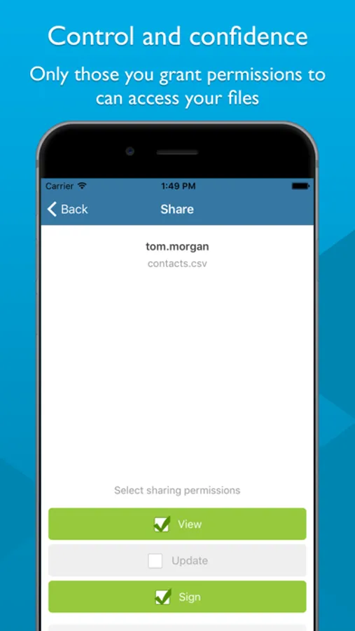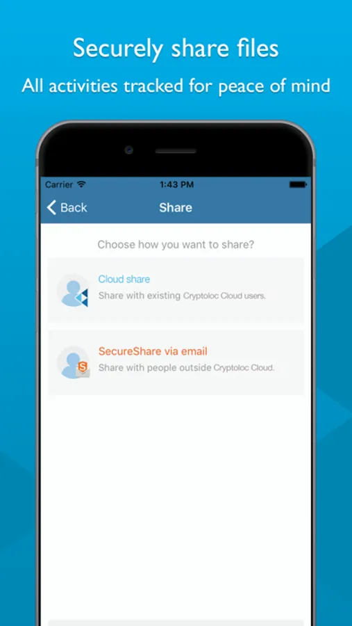 Cryptoloc Cloud allows you to securely store, share, track, and sign your files. Your files are encrypted using Cryptoloc technology, our patented two-stage encryption algorithm. Using your Private Key you can safely store your documents, photos, and videos and access them anywhere on your iPhone, iPad, or computer. Your files are backed up and new versions are created when you update files. Easily collaborate with your team by allowing them to view, edit, or update your files. Get contracts across the line faster by sending and receiving files that can be signed with a single tap.