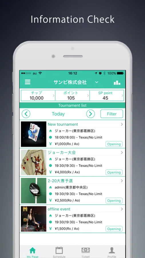 Poker events throughout the country, poker spots and groups, and circle information are consolidated and can be easily searched!