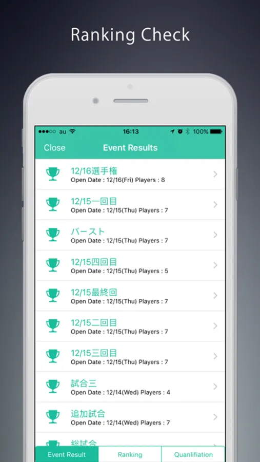Event applications, participation and results are reflected in real time in the application, and you can quickly check your ranking, winning information, etc.!