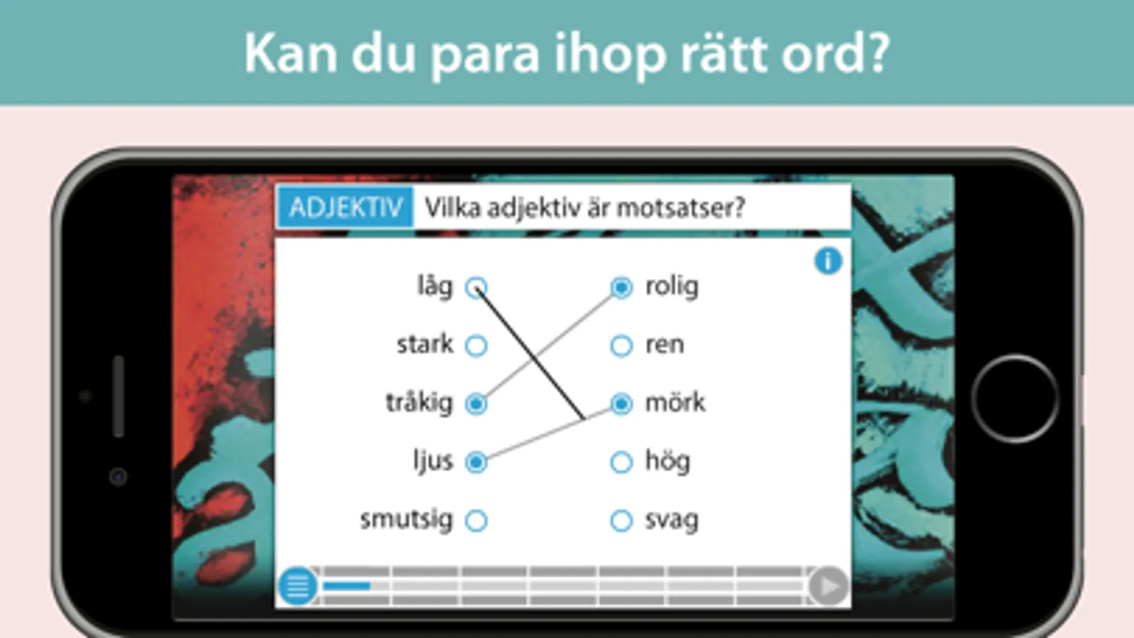 Låt Form i fokus A lära dig grunderna i den svenska grammatiken. Du förbättrar snabbt dina kunskaper i det svenska språket med hjälp av appens varierande och utmanande övningar. Komplettera med boken Form i fokus A om du vill öva mer.