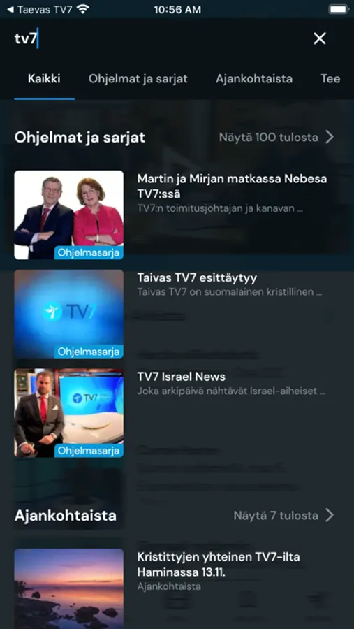 Voit antaa suoraa palautetta sovelluksesta lähettämällä sähköpostia osoitteeseen palaute@tv7.fi.