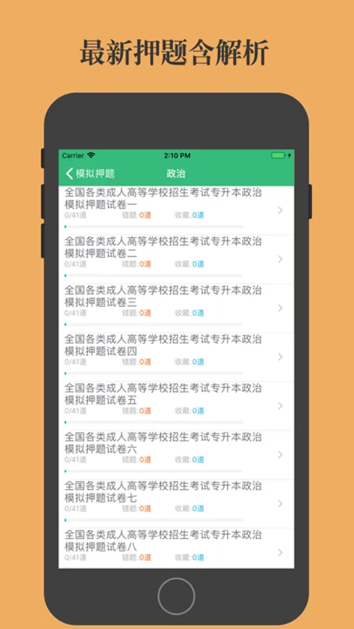 本软件为全国各类成人高考专升本考试的软件,包括政治,大学语文,英语,艺术概论,高等数学(二),高等数学(一),教育理论教育学,民法,医学综合等科目,准备了2021年最新冲刺押题试卷、最新历年真题、考点汇总等。为考试的提供了充分的复习准备,可随时随地学习练习,有效帮助顺利通过考试,学习知识通过考试必备神器!