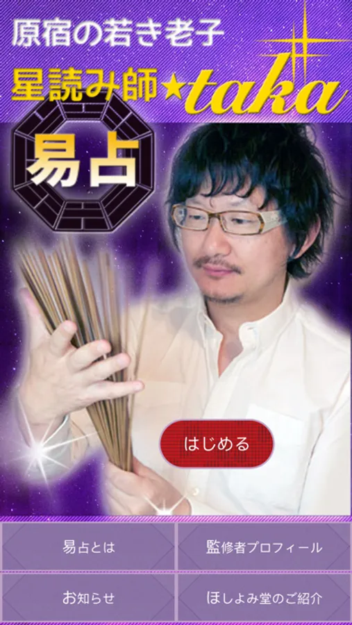 占い歴20年、鑑定実績1万人以上の原宿の占い師 中島多加仁(なかしま たかひと)監修 易占いアプリ。