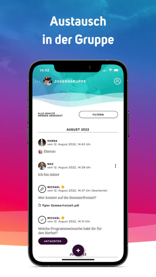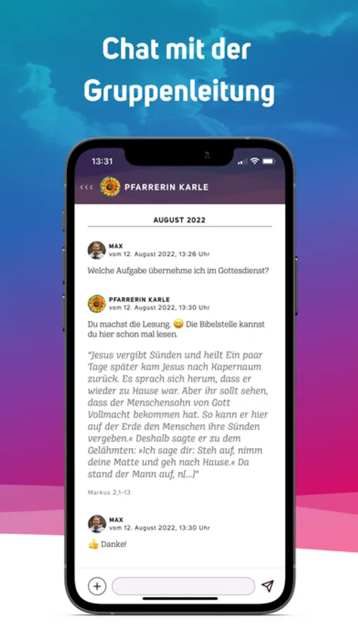 - Einzelchats: Mit der Gruppenleitung sind direkte Gespräche möglich.