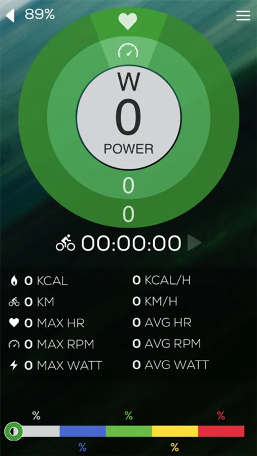 - Colour intensity zones: 5-zone colour display (Coggan's power zones).
