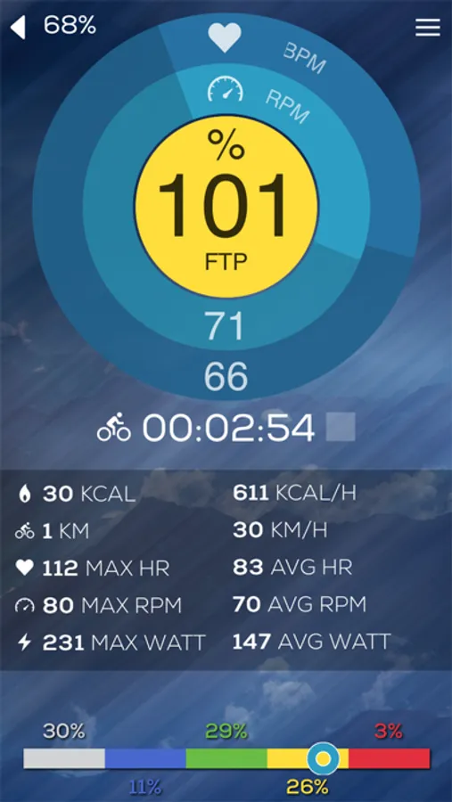 - Intensity scale: Get an overview of how many percentages of each workout you have spent in the few different intensity zones.