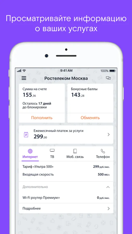 Мобильное приложение Ростелекома для клиентов Москвы – это личный кабинет в твоем смартфоне