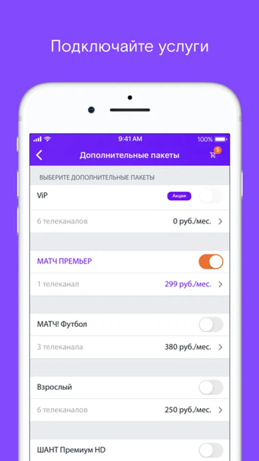- управлять услугами, подключать дополнительные опции и пакеты каналов