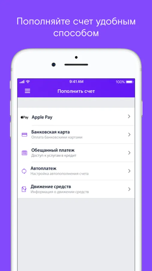 - быстро и удобно пополнять счет через систему быстрых платежей или банковской картой
