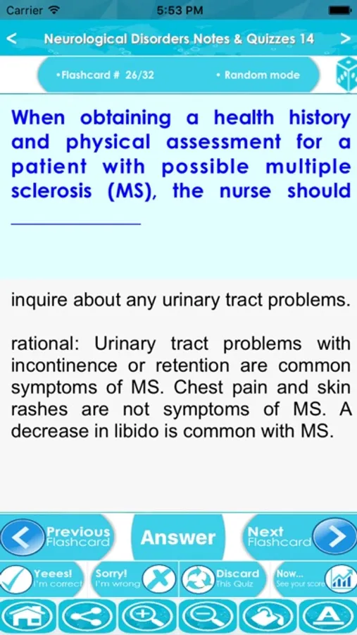 This app is a combination of sets, containing practice questions, study cards, terms & concepts for self learning & exam preparation on the topic of Neurological Disorders.