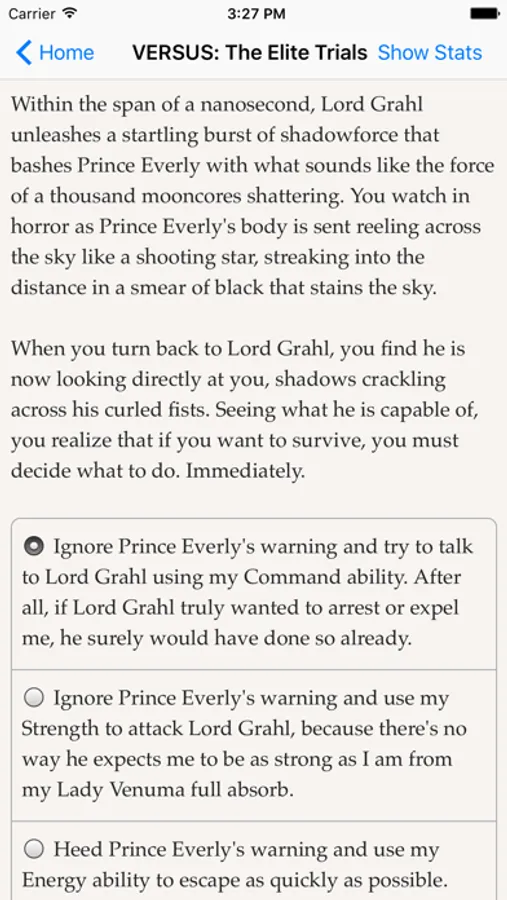 "Versus: The Elite Trials" is a thrilling 140,000-word interactive novel by Zachary Sergi, author of our best-selling "Heroes Rise" trilogy. Your choices control the story. It's entirely text-based—without graphics or sound effects—and fueled by the vast, unstoppable power of your imagination.