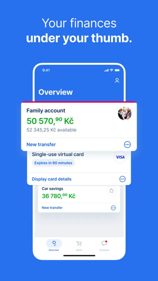 Chcete mít své peníze pod kontrolou za všech okolností, ať jste kdekoli? S Georgem si jednoduše online a zdarma otevřete účet u České spořitelny, získáte přehled o Vašich příjmech a výdajích, v případě potřeby změníte limit na platební kartě, sjednáte cestovní pojištění nebo ušetříte díky slevovému programu Moneyback! Do aplikace se můžete přihlašovat pomocí otisku prstu nebo Face ID, případně si vybrat jiný způsob zabezpečení.