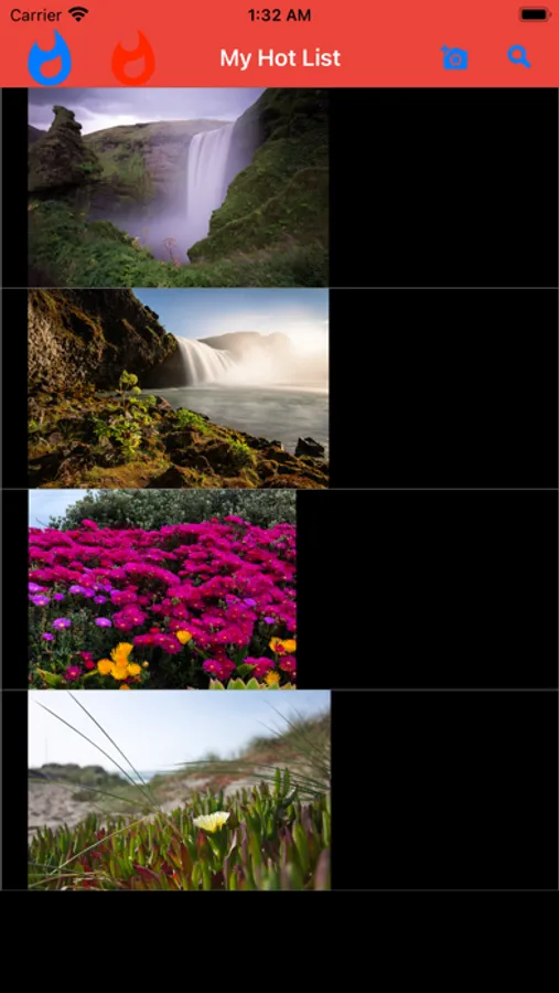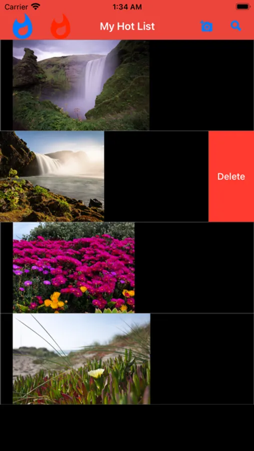 • Tap the search-icon (magnifying glass) to select and add a photo from your device to your hot list.