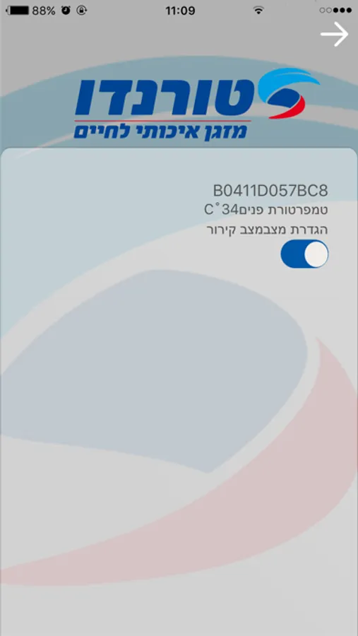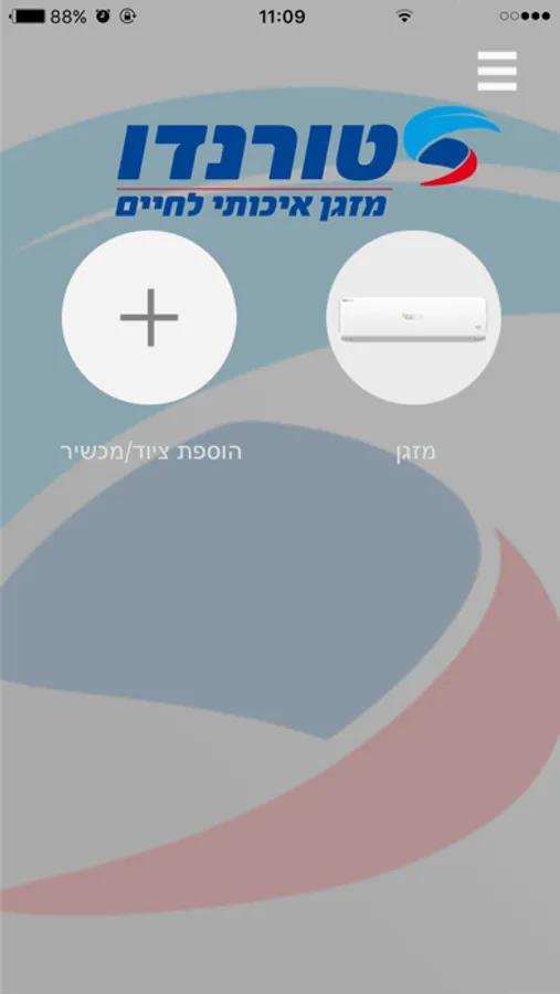 טורנדו מזגנים אפליקציית להפעלת המזגן מתוך ומחוץ לבית באמצעות מכשיר הסלולר