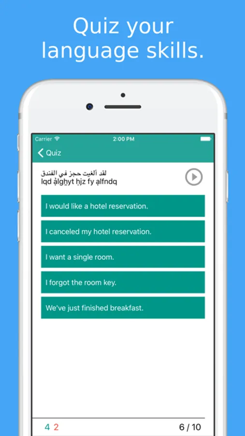 All Arabic phrases and words are presented to you in both phonetic and original Arabic writing. They are recorded by a native speaker from arabic countries.
