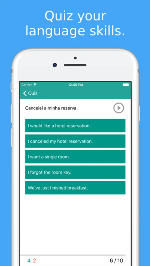 * Adjust the quiz and flashcards settings for Portuguese to English, English to Portuguese