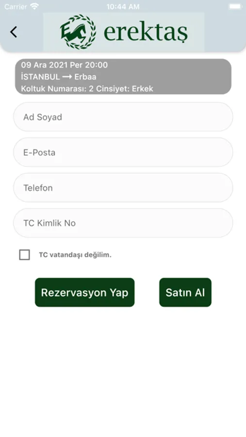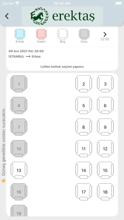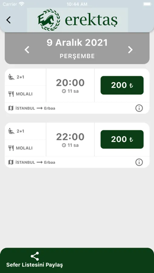 Erektaş Seyahat'in şehirlerarası ulaşım biletlerinin satılmasını sağlayan bir iPhone uygulamasıdır.