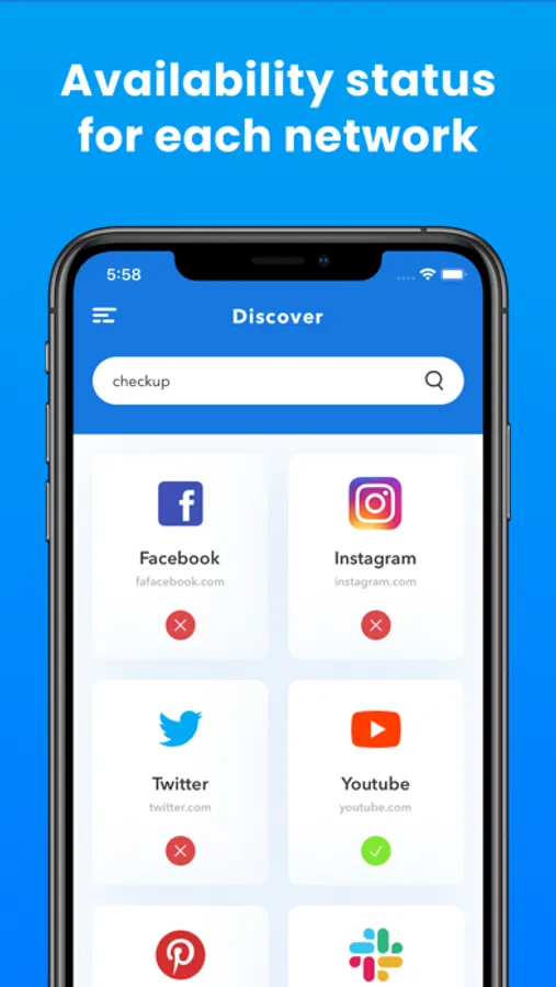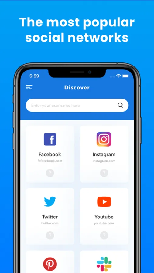 We guarantee you that this app will save you time in picking the desired username on social networks. You can also create an account directly from the app!