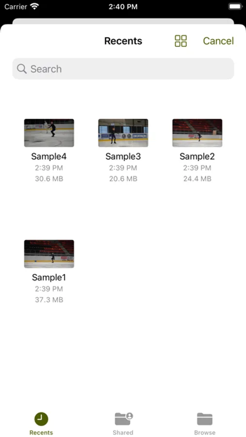 The videos can be loaded from the media gallery, the Files App or directly from the camera. drag'n'drop is also supported on the iPad.