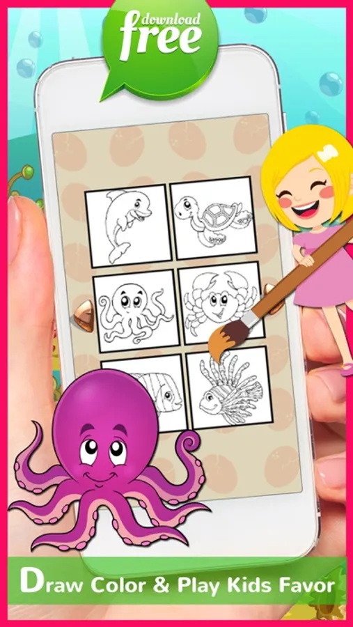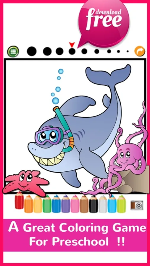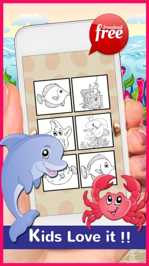 Sea Creatures Coloring Book! With full bright color and colorful brush is a funny app to motivate children's creative ability.