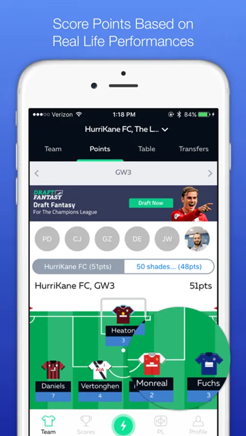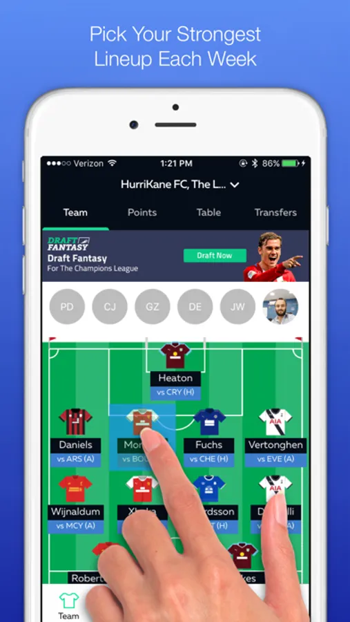 - Use the “More” tab to switch draft fantasy football teams, see the Premier League Table and Fixtures