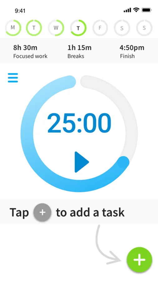 - Day View: Integrates with your calendar. See your focus tasks planned out between appointments.