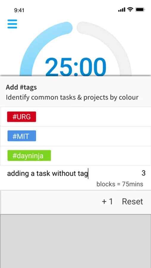 - Target block count & estimates: keep motivated with focus goals, set your personal daily targets.