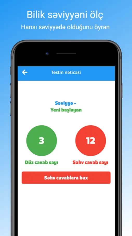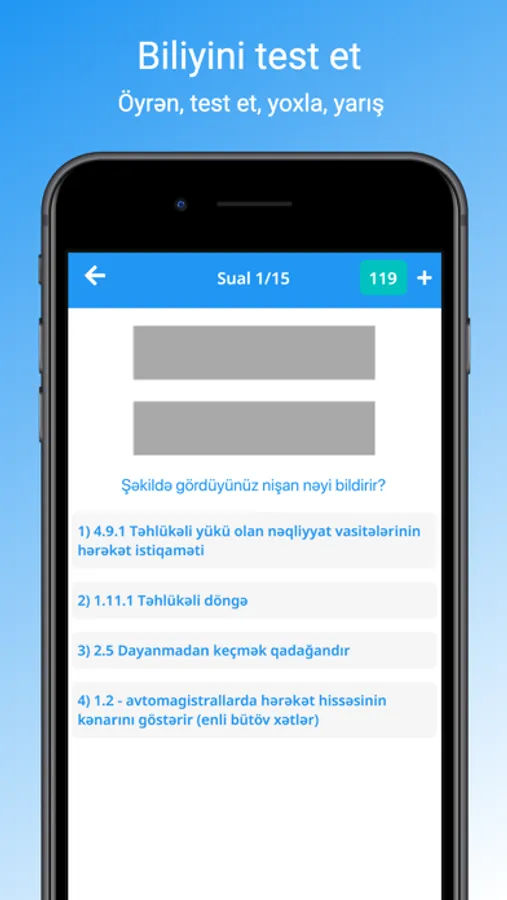 Proqramda test funksiyası var. Suallara cavab verməklə yol nişanları biliklərinizi test edə bilər və nəticəni dostlarınızla paylaşa bilərsiniz.