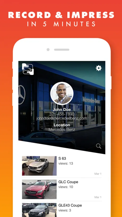 For example, if you have a customer requests more info on a car you can film a video showing them around the car and then display that video over the car detail page on your website or a third-party website.