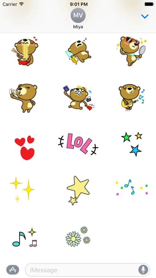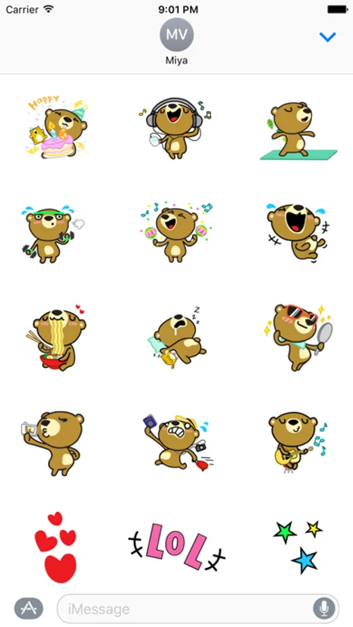 Meet Miya the Bear, use this cute loving character to express yourself on iMessage with more emotion and add fun to your conversations. This set contains 20 animated stickers that cover eating, listening to music, taking selfies, and many more everyday moments. Stay tuned for more!